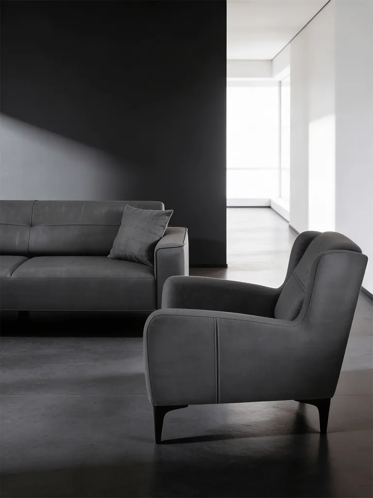 Mit klaren, modernen Linien, ausgewogener Sitzhöhe und Sitztiefe sowie hochwertiger, unifarbener Stoffpolsterung eignet sich DESNA sowohl für private Wohnräume als auch für anspruchsvolle Objekt‑ und Hospitality‑Projekte. Die sorgfältig abgestimmten Proportionen sorgen dafür, dass Hinsetzen und Aufstehen mühelos funktionieren, während die Gesamtwirkung im Raum stimmig bleibt.